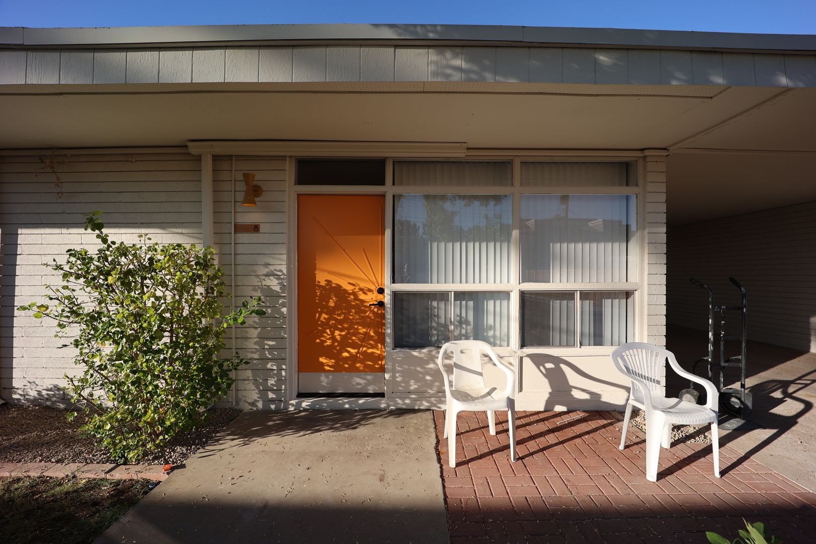 Starburst, bright orange exterior doors